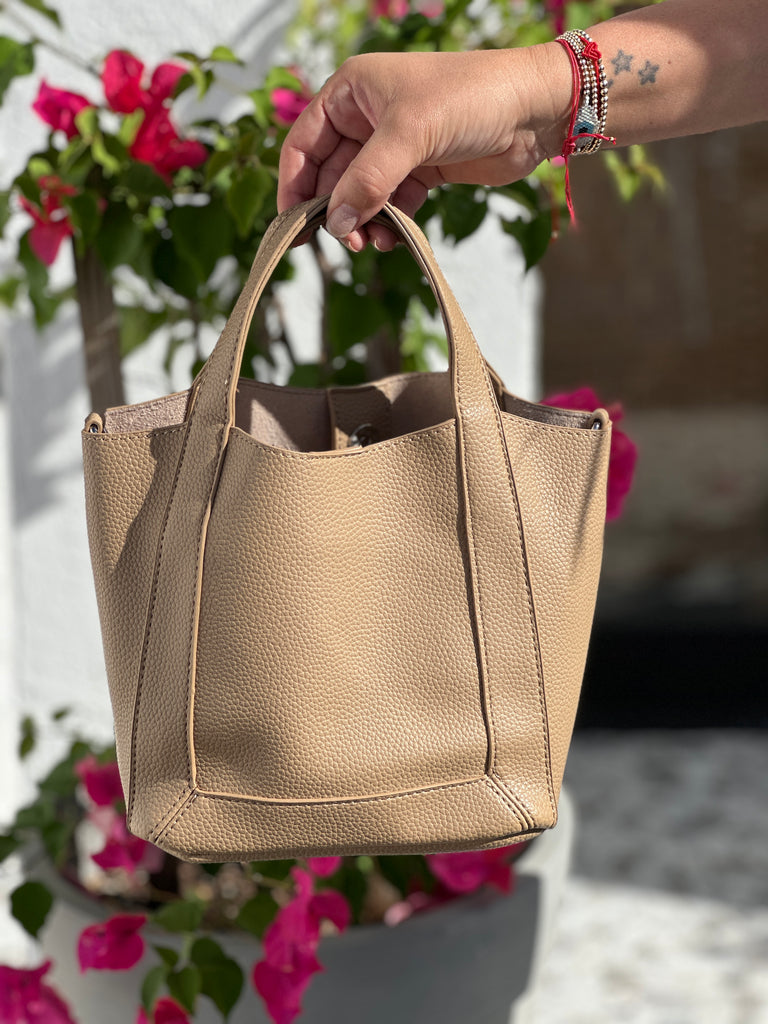 Experience style and convenience with our FRANKIE LEATHER PEBBLE BUCKET BAG. Made from high-quality vegan leather, it's perfect for everyday use and includes a makeup bag and cross body strap. Stay organized and chic on-the-go with this versatile bucket bag.